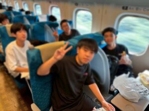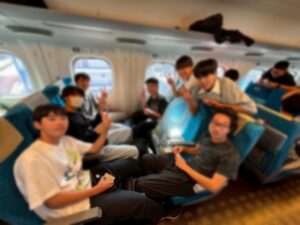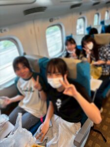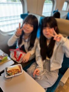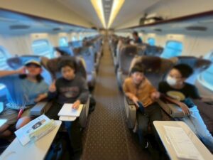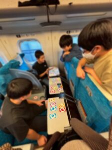 新幹線内での自由時間は、様々なカードゲームで楽しんでいます。友達とのおしゃべりも弾んでいるようです。朝早くからお弁当の準備ありがとうございました。京都駅からバスに乗り、そろそろ法隆寺に着くころでしょうか。