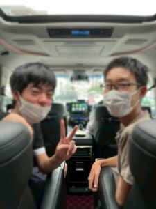 今日の班行動はタクシーです。運転手さんよろしくお願いします。