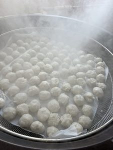 里芋を蒸して、つぶして丸め、もう一度蒸します。