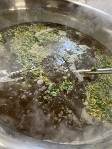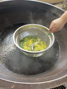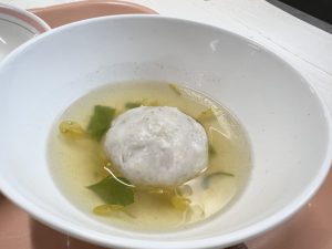 教室ではお団子を入れてから汁を注ぎました。(生徒はお出汁の量がもう少し多く入りました。)どのクラスもよく食べていてよかったです!菊の花をいただく機会はあまりないとおもうので、よい体験になったのではないでしょうか?