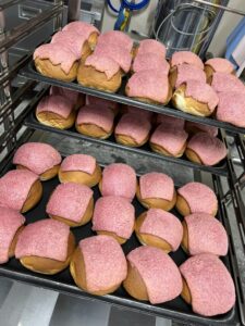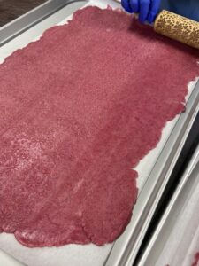 できたら1カ月に1回は取り組みたいと思っているのですが、ちょうどいい時期に咲いているお花がなかったり、表現するのが難しいお花だったり、あきらめることも多いです。今日もぎりぎりまで悩んで、この「秋桜パン」に決めました。パンの表面の模様をよく見てみてください!