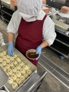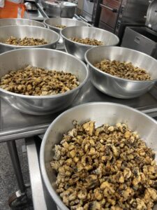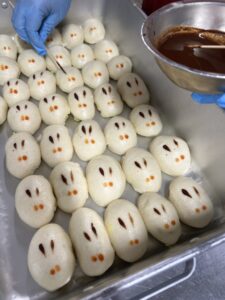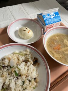配膳時には生徒から「学校で作ったの??え?今日?」と聞かれました。もちろん今日の朝さつまいもが届いて、蒸して潰して、饅頭生地を作り、包んで、蒸して、顔を書き…というのは、私達にとっては当たり前のことだけれど、「そうか、そこまでなかなか想像しないかも…」とハッとしました。