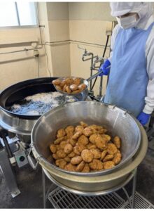 今日は寒露にちなんで「がんもどき」を作りました。がんもどきは、肉を食べられない僧侶のために雁の肉に似せて作られた料理です。がんの肉もどきが略されて「がんもどき」という名がついたと言われいます。出汁をかけていただきましょう!