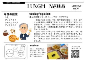 エジソンはナッツやコーヒーが好きだったそうです。また、朝食にはアップルパイをよく食べていたともいわれています。偉人達も生きていくために「食」は欠かすことのできないものでした。「発明王」を支えていたのはこうした好物だったのかもしれませんね。