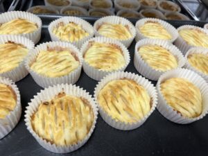 カップにりんごを入れて、上からパイ生地をのせて、オーブンへ!