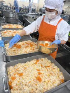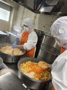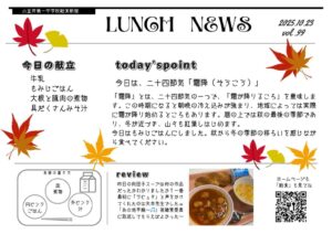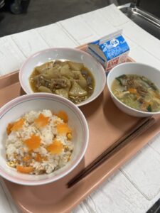 今日はもみじごはんにしました。秋から冬の季節の移ろいを感じながら食べてください。