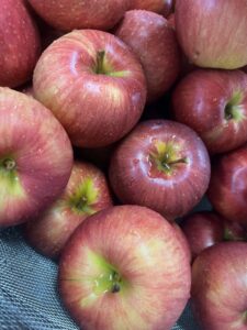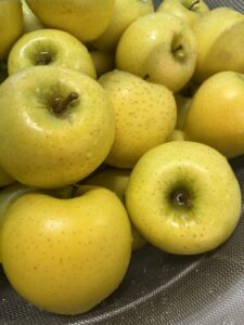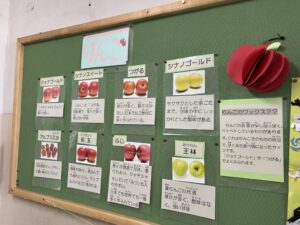 今日食べくらべるのはシナノスイートとシナノゴールドです。シナノスイートは甘みが強く、酸味が少なく果汁が多いりんごです。シナノゴールドは甘みと酸味のバランスが良く、果汁が多くてジューシー、サクサクとした食感のりんごです。日本には約2,000種類のりんごが栽培されています。いろいろなりんごを食べくらべて、好きなりんごに出会えるといいな~と思っています。