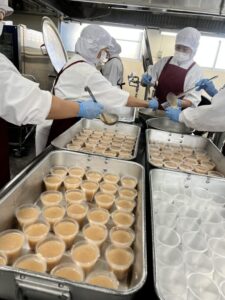道明寺粉を入れた羊羹にしたのですが、試作したときよりも粒子の粗いものが届いてしまいました。でも桜の風味も控えめで子どもたちに食べやすい味に作ることができたと思います。