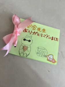 授業のお礼のお手紙をいただきました!私の好きなキャラクターをちゃんと書いてくれているところに感激しました!ありがとう(^o^)