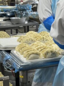 リクエストのラーメンに合わせるのはやっぱりジャンボギョーザ!手のひらでは収まらないほど大きな特注の直径15センチの皮でぎょうざを包んでいます。