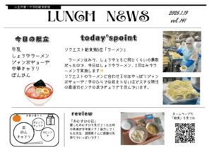 ラーメンはみそ、しょうゆともに同じくらいの票数だったので、今日はしょうゆラーメン、2月はみそラーメンを実施します✨