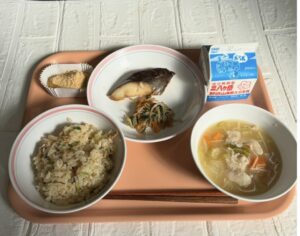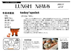 「初午」は2月の最初の午の日に、京都の伏見稲荷大社をはじめとする、日本各地の稲荷神社で行われる祭礼のことです。開運・商売繁盛の神として有名な稲荷神社ですが、元来は「稲が成る」という意味の「稲生(いねなり)」に由来した、田の神です。昔は農作業を始めるこの時期に田の神を迎え、五穀豊穣を願ったことから、初午の日には稲荷神社にお神酒(おみき)や油揚げ、稲荷寿し、赤飯などを供えるようになったそうです。油揚げを供えるのは、田の神の遣いである狐の好物だからとされています。また岐阜県などの養蚕が盛んな地域では繭の形をした初午団子をお供えする地域もあるそうです。今日は稲荷ごはんと初午団子の献立にしました。