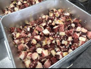 今日は3年生の受験応援メニューにしました!たこは英語でoctopus!