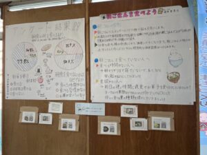 こちらは先日行なった「朝食についてのアンケート」の結果を健康委員会が見やすいように掲示してくれました。