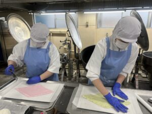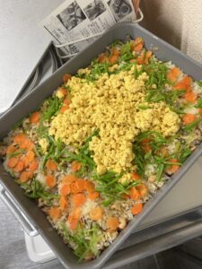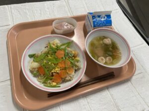今日は行事食としてちらし寿司とひしもち白玉を作りました。
