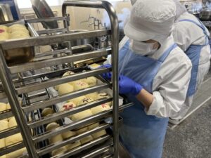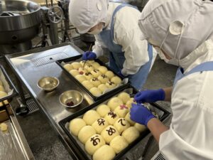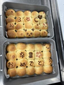 今日は3年生に特別メニューを用意しました!手作りパンです!