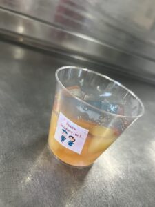 デザートは桃入りの2色のゼリーにしました🌸シールも作って貼りました✨️